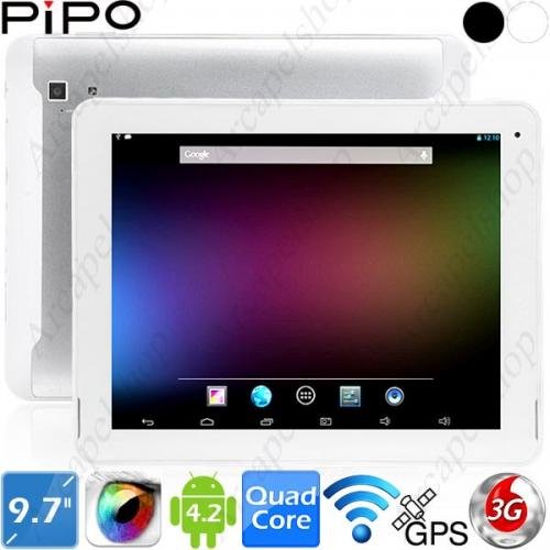 Modell PIPO M6 Quad Core Tablet PC CPU Rockchip RK3188, Cortex A9 Quad-Core, 1,8 GHz, GPU: Mali 400 MP4 Betriebs-System Android 4.2 RAM 2GB (DDR 3) ROM-Speicher? 16GB Shell-Material Aluminium Schale Bildschirmgröße 9,7 Zoll Art Kapazitiver Schirm, IPS Display LCD Auflösung 2048 x 1536px Sichtbarer Winkel 180 ° Verlängern Sie Karte Stützen Sie TF-Karte bis zu verlängertem 32GB Kamera Dual-Kamera, ist vorne 2,0 Megapixel, ist zurück mit einem 5.0 Megapixel Taschenlampe Schwerkraft-Sensor Ja Multi-Touch Ja, Spielen 10 Punkte Note Shop Ja errichtet in Bluetooth Ja Bluetooth 2.1 3G: Ja, in OTG Ja Video 1080P, AVI/MOV/MP4/RMVB/FLV/MKV bauen ... Musik MP3/WMA/WAV/APE/AAC/FLAC/OGG Ebook UMD, TXT, PDF, HTML, RTF, FB2 ... E-Mail und Browser Ja WIFI errichtet Ja 802.11 b / g / n Kopfhörer-Schnittstelle 3.5mm Arbeits-Zeit Bis zu 7-8 Stunden Akku 10000 MAh Dimension: 243 * 190 * 10mm Gewicht: 580g Sprache Tscheche, Dansk, Deutsch, Englisch, Spanisch, Russisch, Französisch, Italienisch, Niederländisch, Norwegisch, Polski, Grieche, Portugiese, Svenska, die Türkei, Koreanisch, Japanisch, vereinfachtes Chinesisch, traditionelles Chinesisch Andere Anwendungen File Manager, OfficeSuite, Google-Suche, Task-Manager, Browser, Galerie, Android Webkit , Uhr, Rechner, Kalender, iReader, Gmail ... Verlängern Sie Hafen 1 x-TF 1 x Micro-USB-Anschluss, 1 x HDMI-Anschluss MINI 1 x 3,5 mm Kopfhörer-Anschluss Was ist enthalten: 1 x PIPO M6 3G Tablette 1 x Ladegerät 1 x USB-Kabel